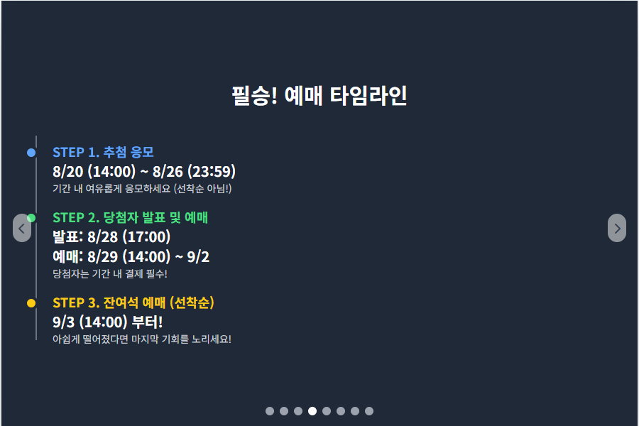 - 대상: 추첨에서 아쉽게 떨어졌거나, 당첨자가 미결제하여 발생한 남은 좌석